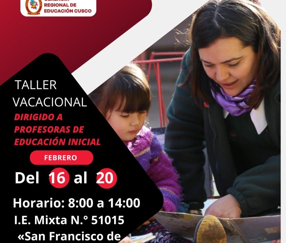 Taller vacacional dirigido a docentes de educación inicial – 2026 La Gerencia Regional de Educación Cusco te invita a participar del vacacional dirigido a docentes