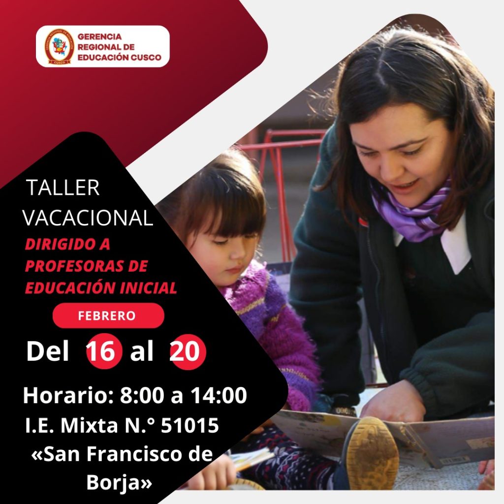 Taller vacacional dirigido a docentes de educación inicial – 2026 La Gerencia Regional de Educación Cusco te invita a participar del vacacional dirigido a docentes